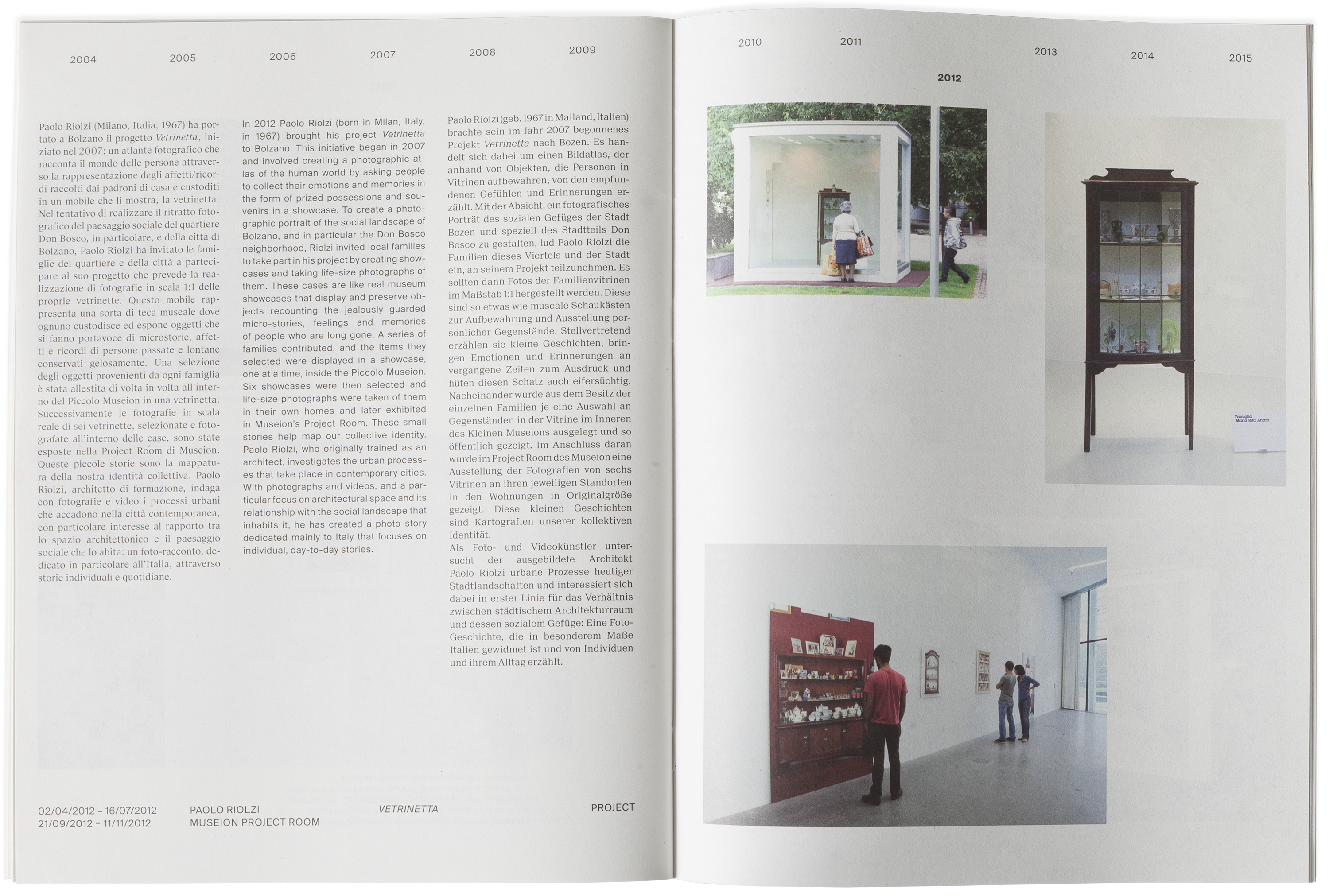 M. Nel 2012 Vetrinetta è stato esposto a Bolzano, su invito di Letizia Ragaglia direttrice di Museion. In quella occasione hai avuto l’opportunità di sperimentarne un allargamento in senso partecipativo. Parallelamente alle immagini esposte nella project-room del Museo hai infatti realizzato una parte del tuo progetto all’interno del Cubo Garutti, micro-struttura espositiva decentrata nel periferico quartiere Don Bosco. Quanto questa esperienza ha modificato la struttura del lavoro e quanto ha inciso nel tuo percorso di ricerca?